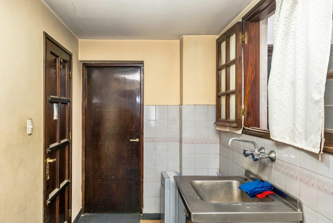La cocina posee muebles bajo mesada y alacena, ofreciendo espacio de guardado y practicidad. Además, el departamento incluye dependencia de servicio, un valor agregado para quienes necesiten un ambiente adicional de apoyo.