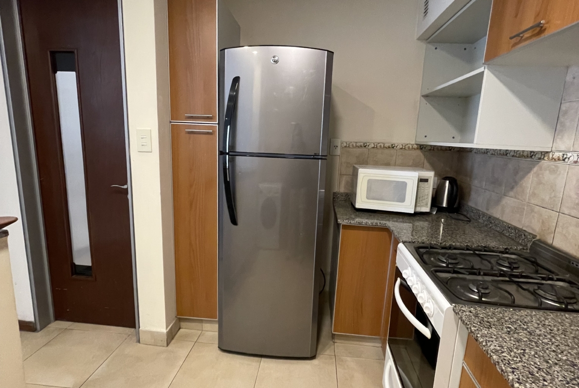 La unidad se encuentra en primer piso al frente, con balcón privado, ambientes funcionales y equipamiento que garantiza confort durante todo el año, como aire acondicionado y calefacción central por radiadores.